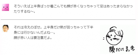 私、顔は真っ赤にはならないけど、汗は無駄に大量にかくし顔ばっかり暑くなるよな・・・。