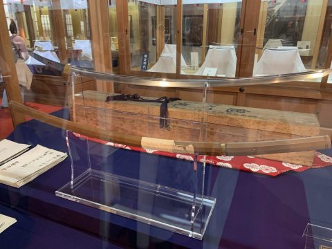 弟の本体(とされている刀剣のうち1口である)薄緑を蔵する同じ京都の大覚寺さんではこのたび、クラウドファンディングで浄財をつのった、薄緑の新しい白鞘(拵え等をつけていない、刀身を保護するためだけの白木の鞘)やそれをおさめる箱、箱にかける布といったものの新調がもろもろ完成して、その記念としてなんと薄緑も特別公開されているというではありませんか。