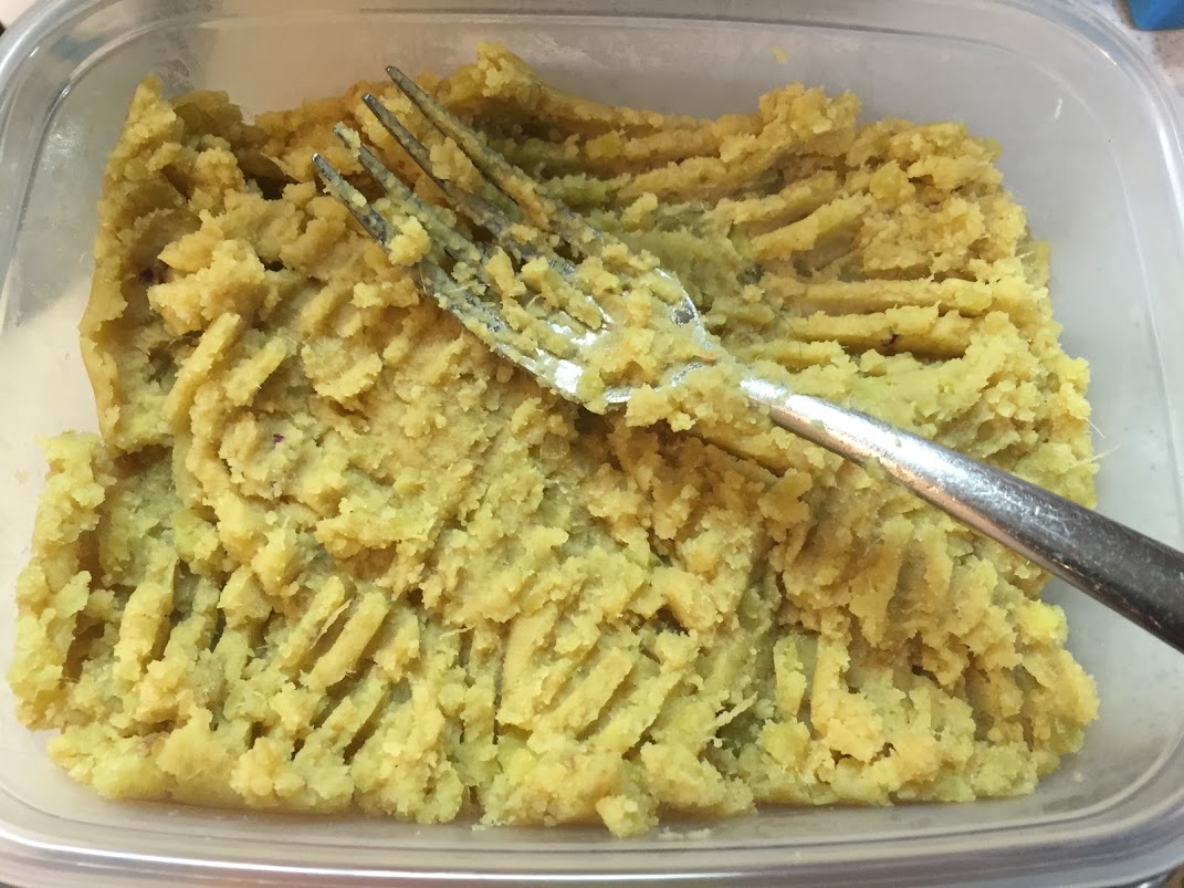ひき肉半分と玉ねぎのざく切りのほうとじゃがいもでシェパードパイ