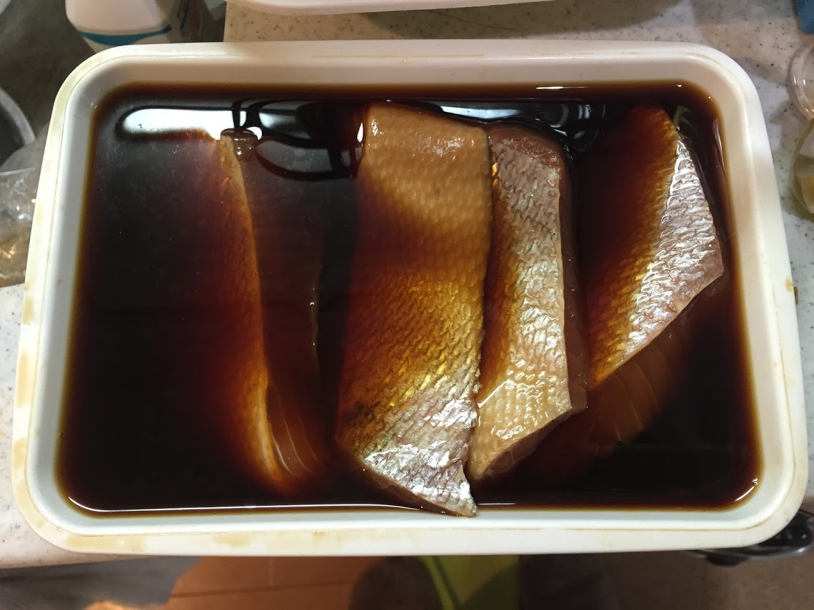 配合は1:1って書いてあるのになんで私ばか正直に酒としょうゆ100ccずつでつけ汁作ったかね(;・∀・)